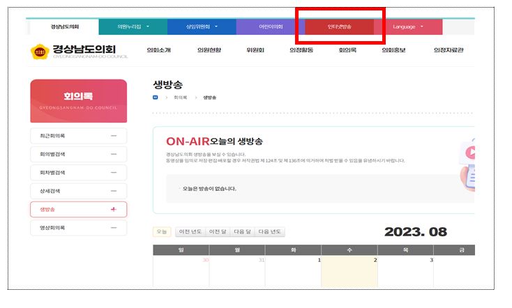- 접속주소:https://council.gyeongnam.go.kr/kr/assembly/live.do